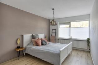 Slaapkamer 3: (ca. 12 m2) is eveneens gelegen aan de voorzijde en voorzien van een laminaatvloer en hardhouten kozijnen met dubbele beglazing.