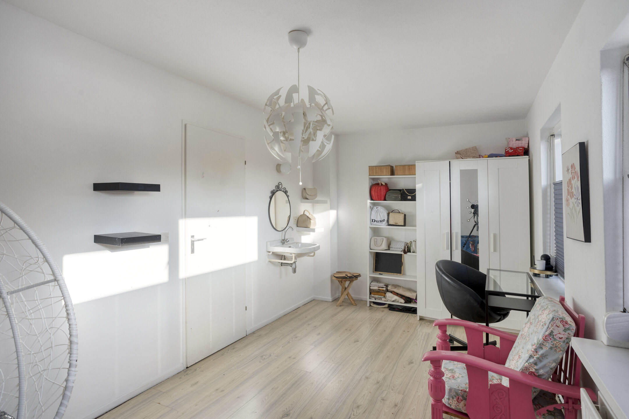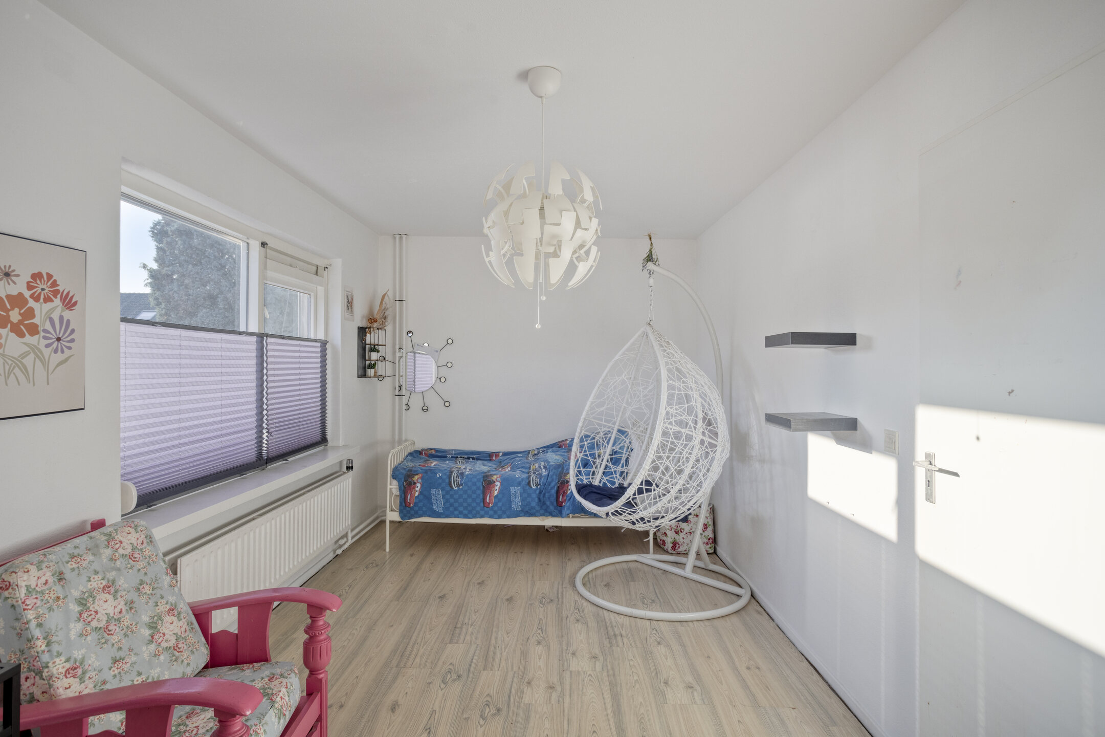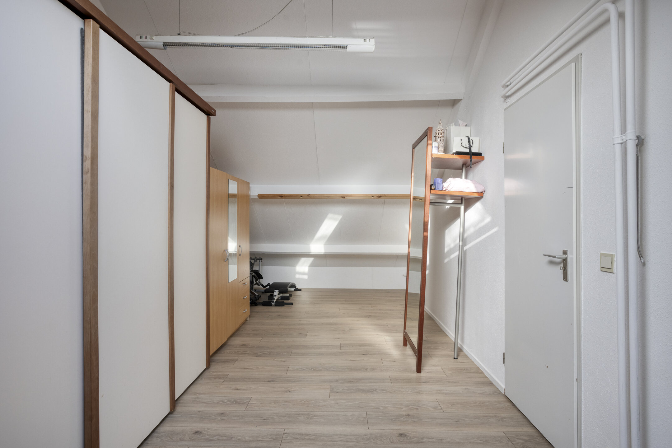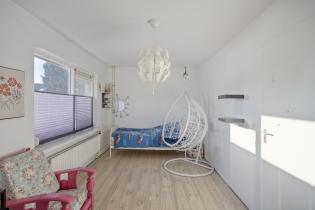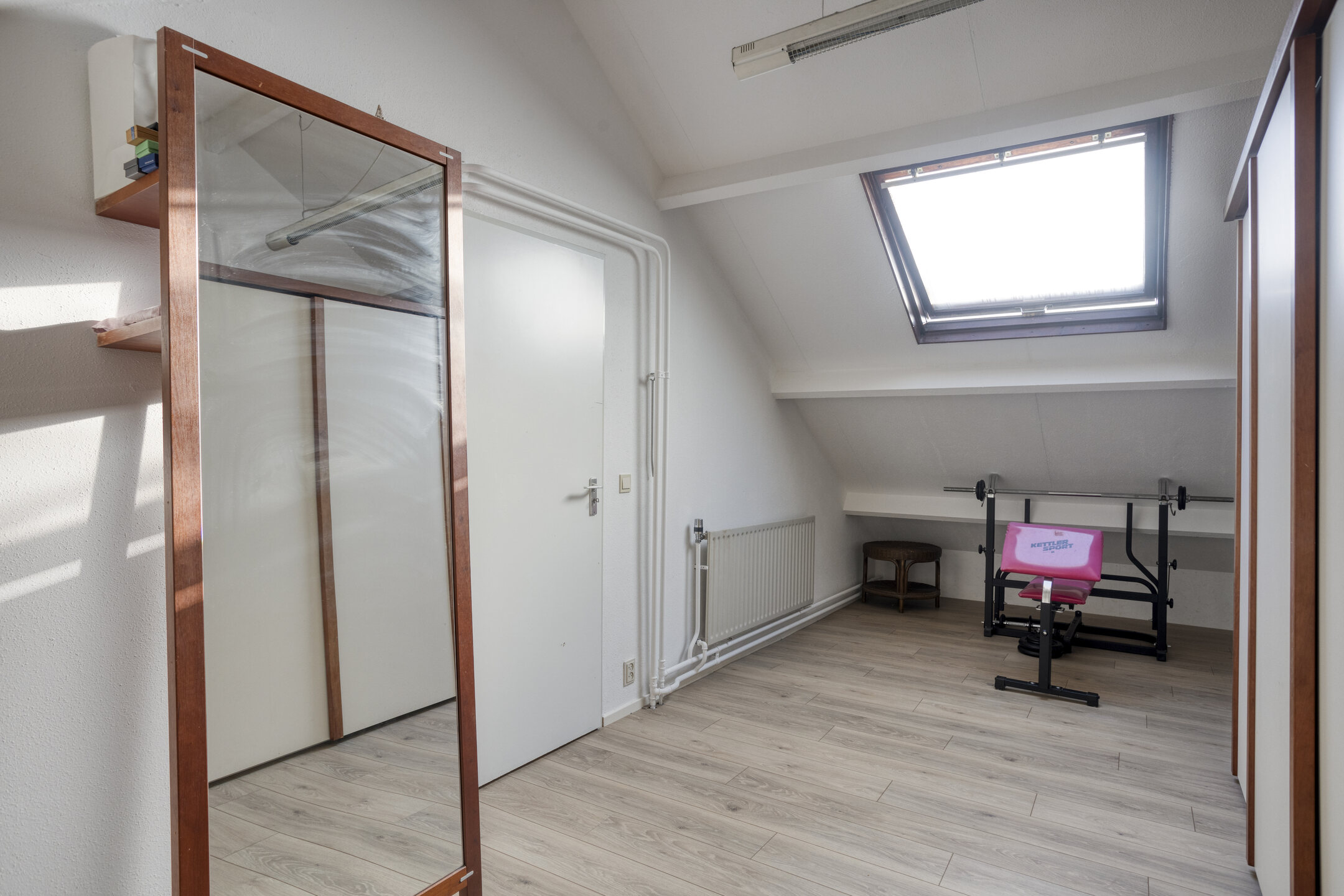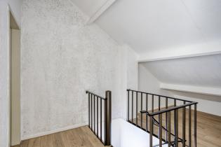 The staircase on the landing leads to the spacious attic floor. Here you will find the very large fourth bedroom (approx. 17 m²), complete with skylight and plenty of natural light. Ideal as an extra bedroom, home office, hobby room, or fitness space.