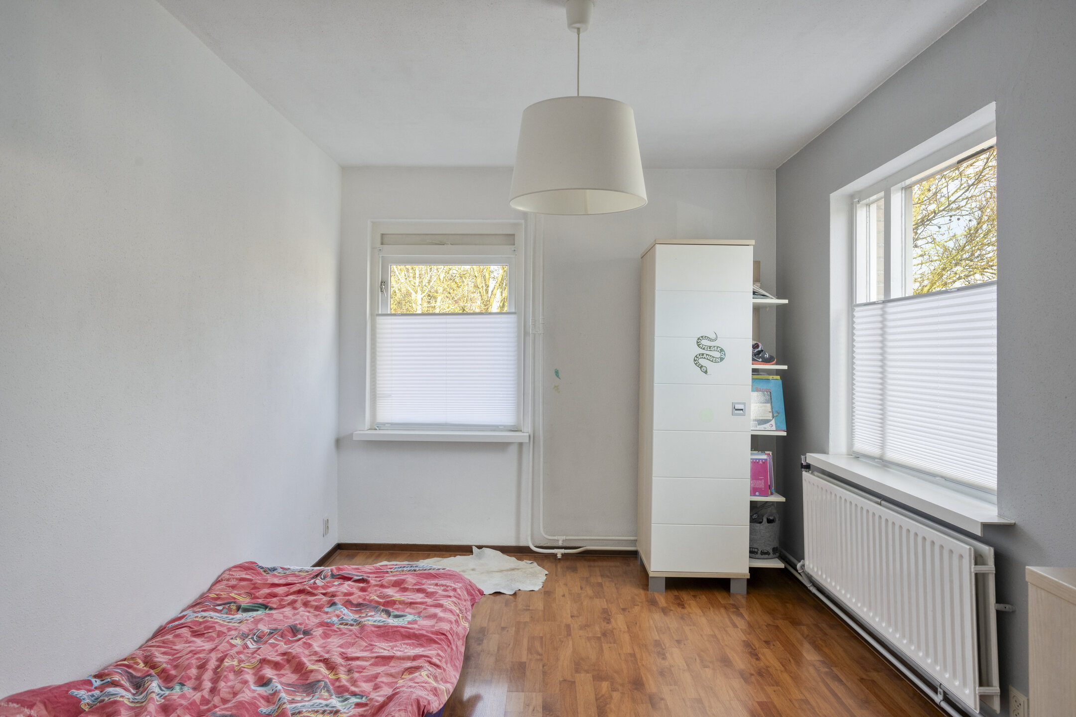 Bedroom 3 (approx. 12 m²) is also located at the front and equipped with laminate flooring and hardwood frames with double glazing.