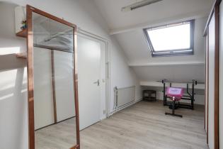 De vaste trap op de overloop leidt naar de ruime zolderverdieping. Hier bevindt zich de zeer ruime vierde slaapkamer, (ca. 17m2) compleet met dakraam en volop licht. Ideaal als extra slaapkamer, werkkamer, hobbykamer of fitnessruimte.