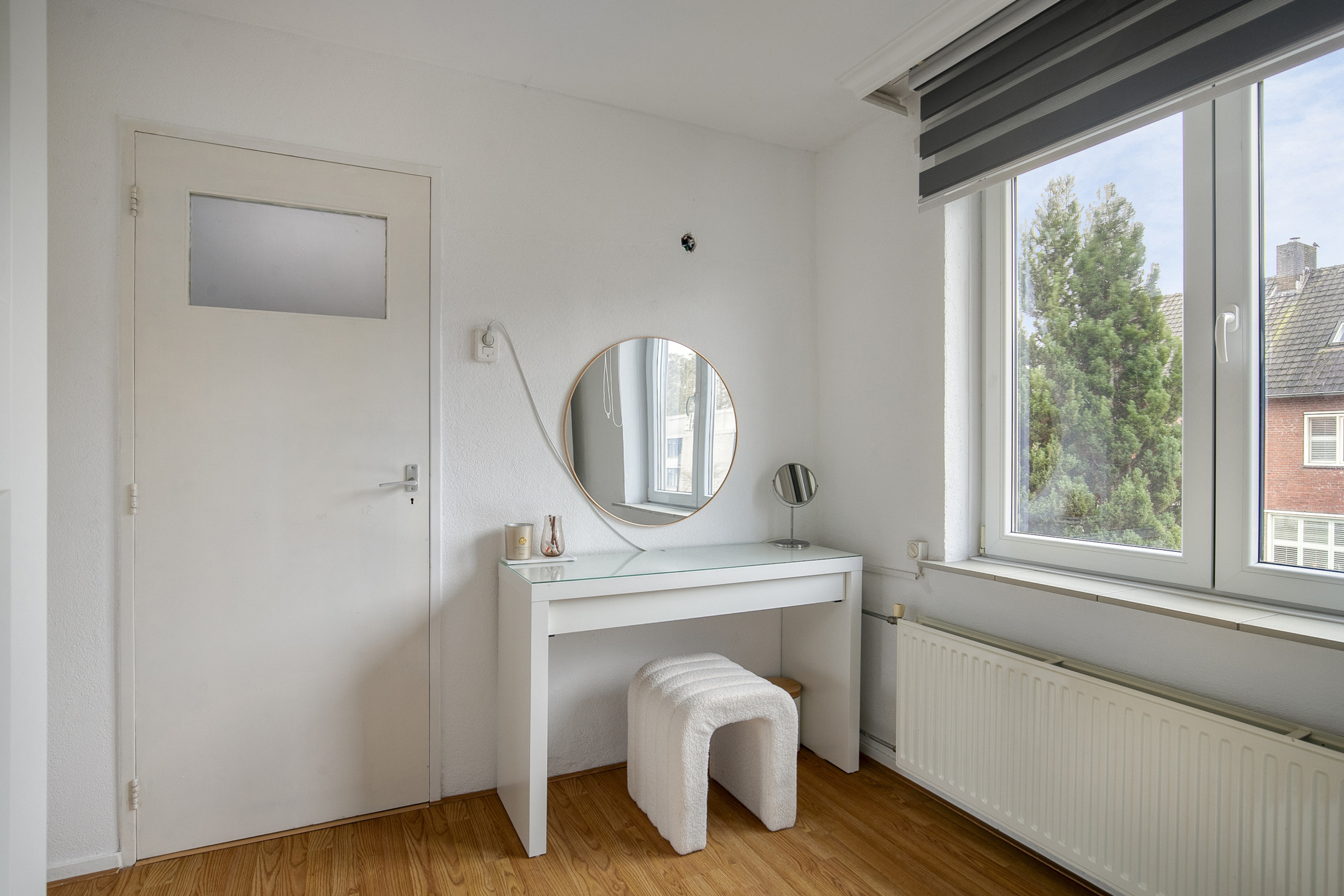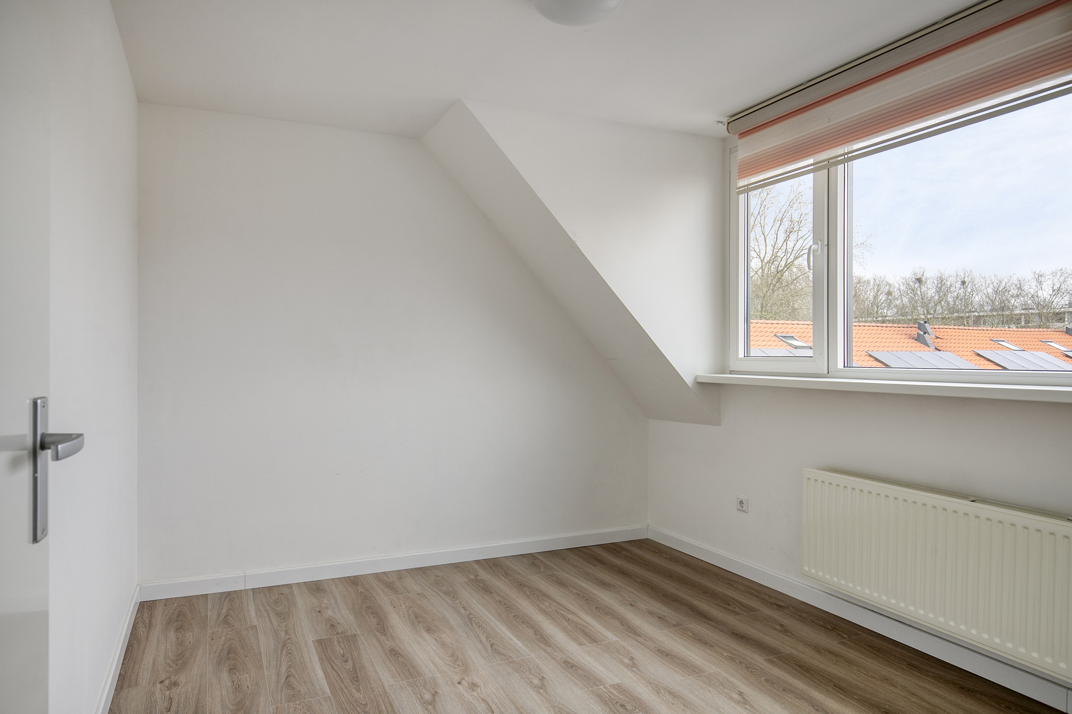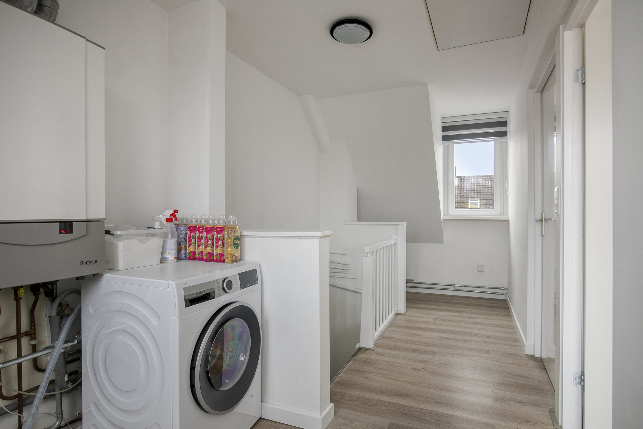 De overloop biedt toegang tot drie slaapkamers en de badkamer. De badkamer is ingericht met een inloopdouche, wastafelmeubel en designradiator. De gehele verdieping is afgewerkt met een laminaatvloer en alle slaapkamers zijn voorzien van elektrische rolluiken.