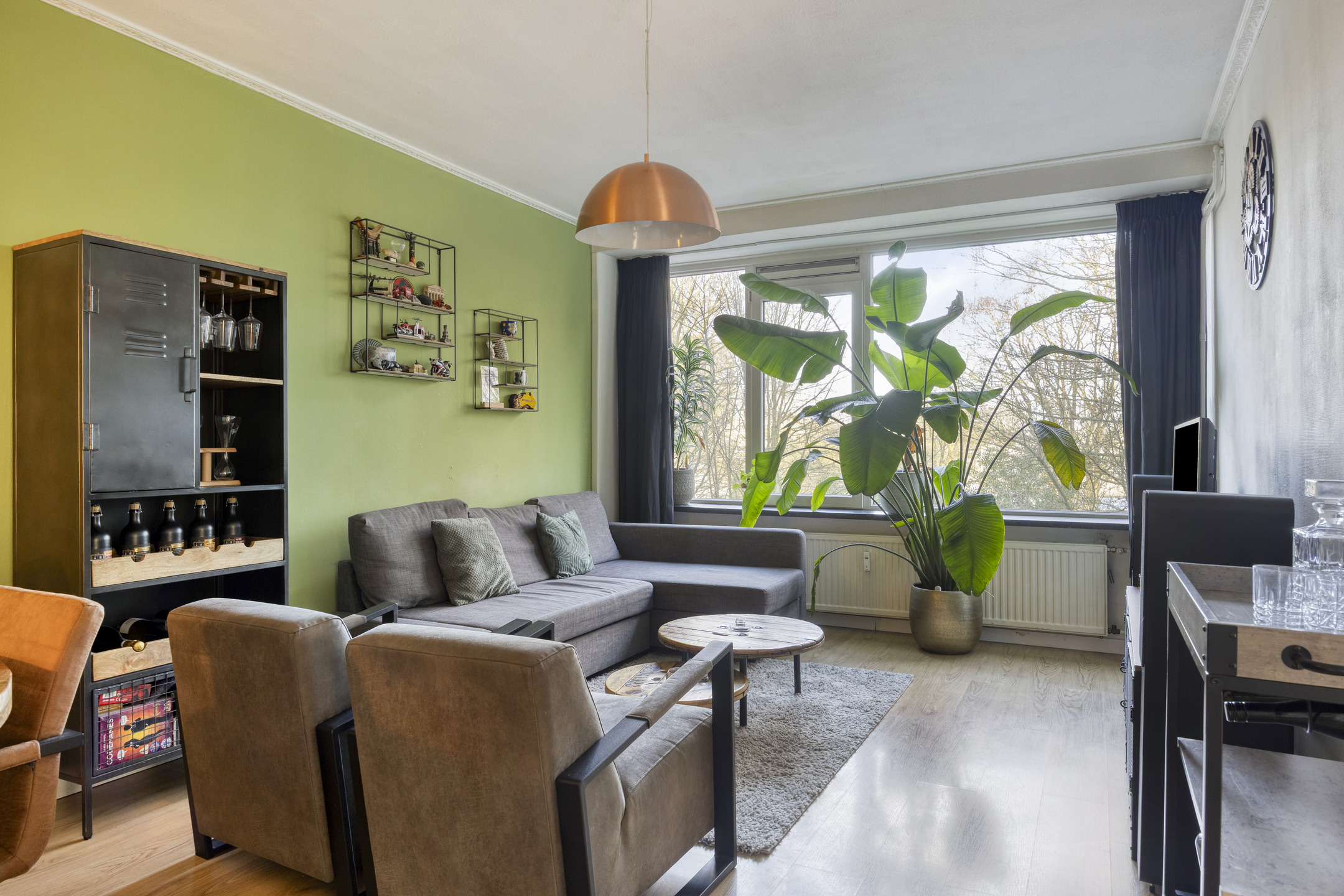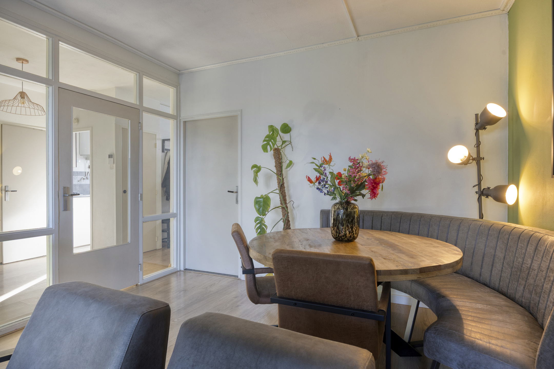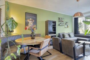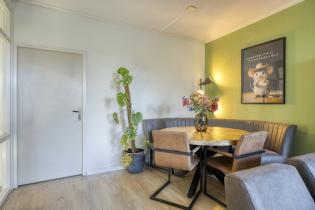 De lichte woonkamer is gelegen aan de achterzijde en beschikt over grote raampartijen die zorgen voor veel natuurlijk daglicht. De ruimte is prettig van formaat en eenvoudig in te delen met een comfortabele zit- en eethoek. De aangrenzende slaapkamer biedt bovendien de mogelijkheid om de woonkamer te vergroten en zo een extra ruime living te creëren.