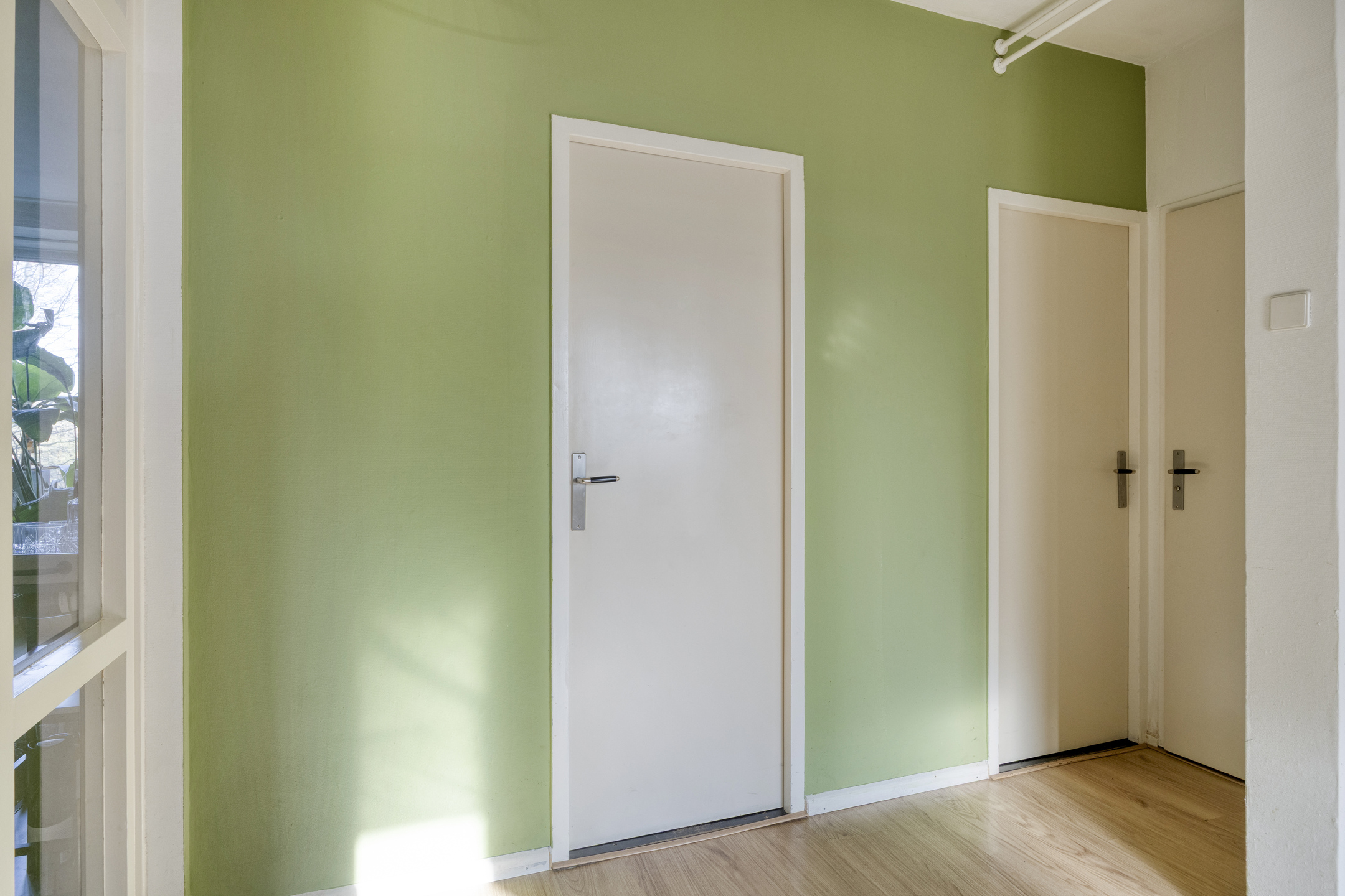 De hal vormt het centrale punt van het appartement en geeft toegang tot de woonkamer, keuken, 2 slaapkamers, badkamer en het separate toilet. De derde slaapkamer is te bereiken vanuit de woonkamer.