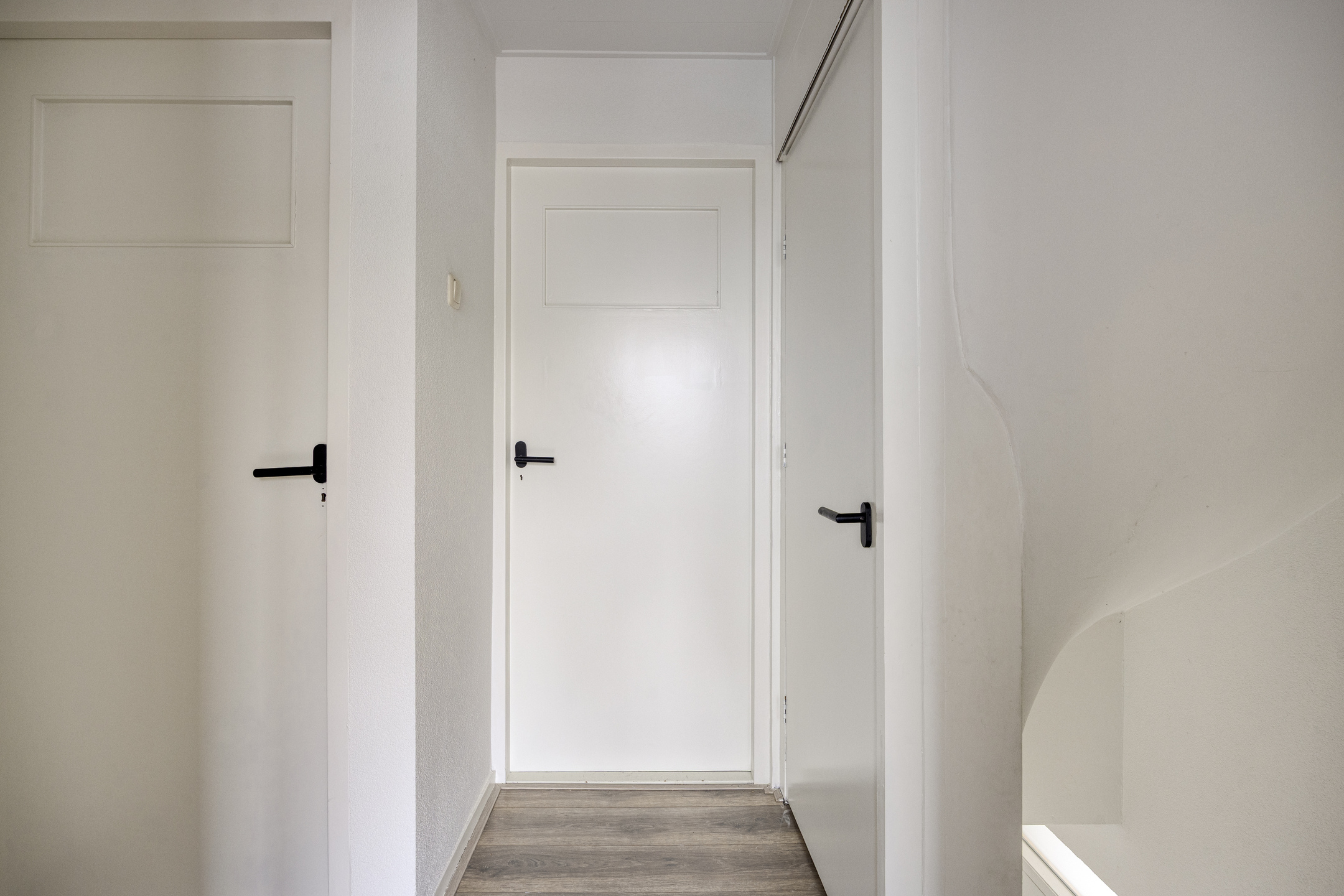 De hoofdslaapkamer aan de voorzijde beschikt over een nieuw kunststof kozijn met triple glas en geïntegreerd rolluik. Ook hier zijn de wanden glad gestuukt en ligt een laminaatvloer. De 2e slaapkamer aan de voorzijde is eveneens keurig afgewerkt en van goed formaat. Aan de achterzijde bevinden zich nog 2 kamers, ideaal als kinderkamer, werkkamer of hobbyruimte.