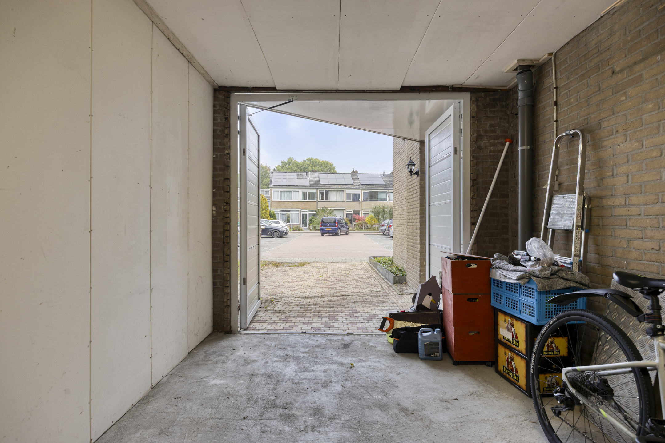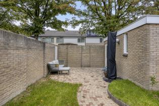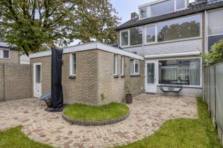 De woning beschikt aan de voorzijde over een oprit met parkeergelegenheid voor één auto en toegang tot de garage. De achtertuin, gelegen op het zonnige westen, is verzorgd aangelegd met sierbestrating, een terras direct bij de woonkamer, een gazon en een tweede terras achter de bijkeuken. Verder is er een buitenkraan, zonnescherm en een achterom aanwezig. Een heerlijke tuin om volop te genieten van de middag- en avondzon.
