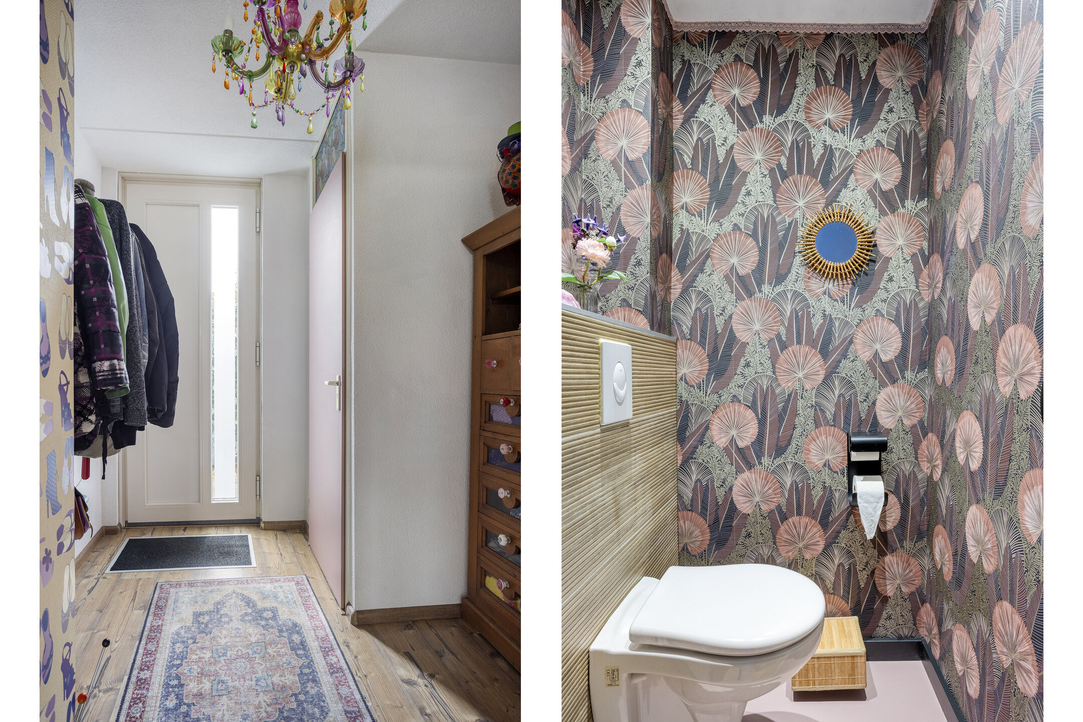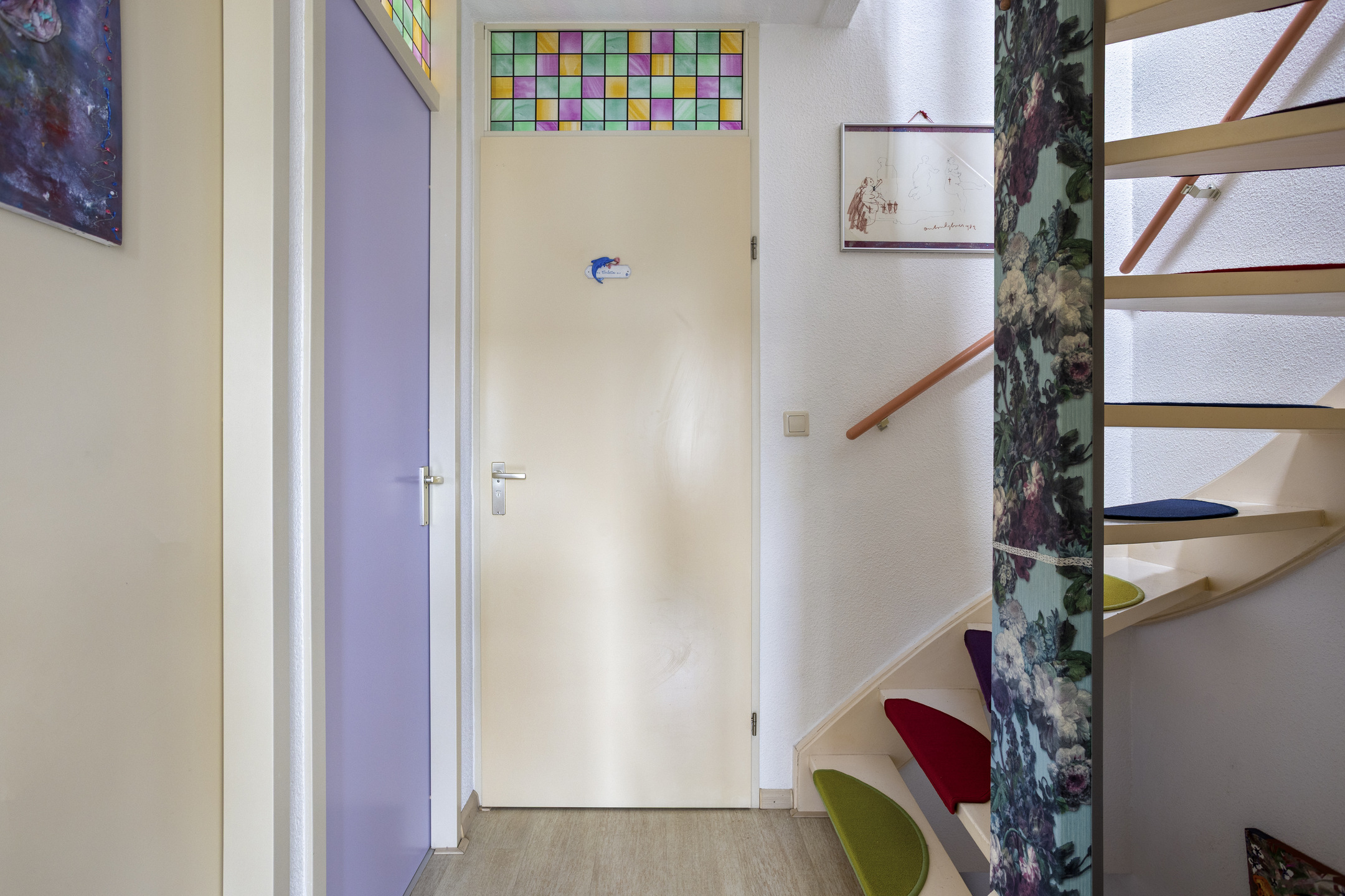 Via de hal/entree betreedt u de woning. Hier ligt een laminaatvloer en heeft u toegang tot de toiletruimte en de woonkamer. De toiletruimte is voorzien van een hangend toilet en afgewerkt met behangen wanden.