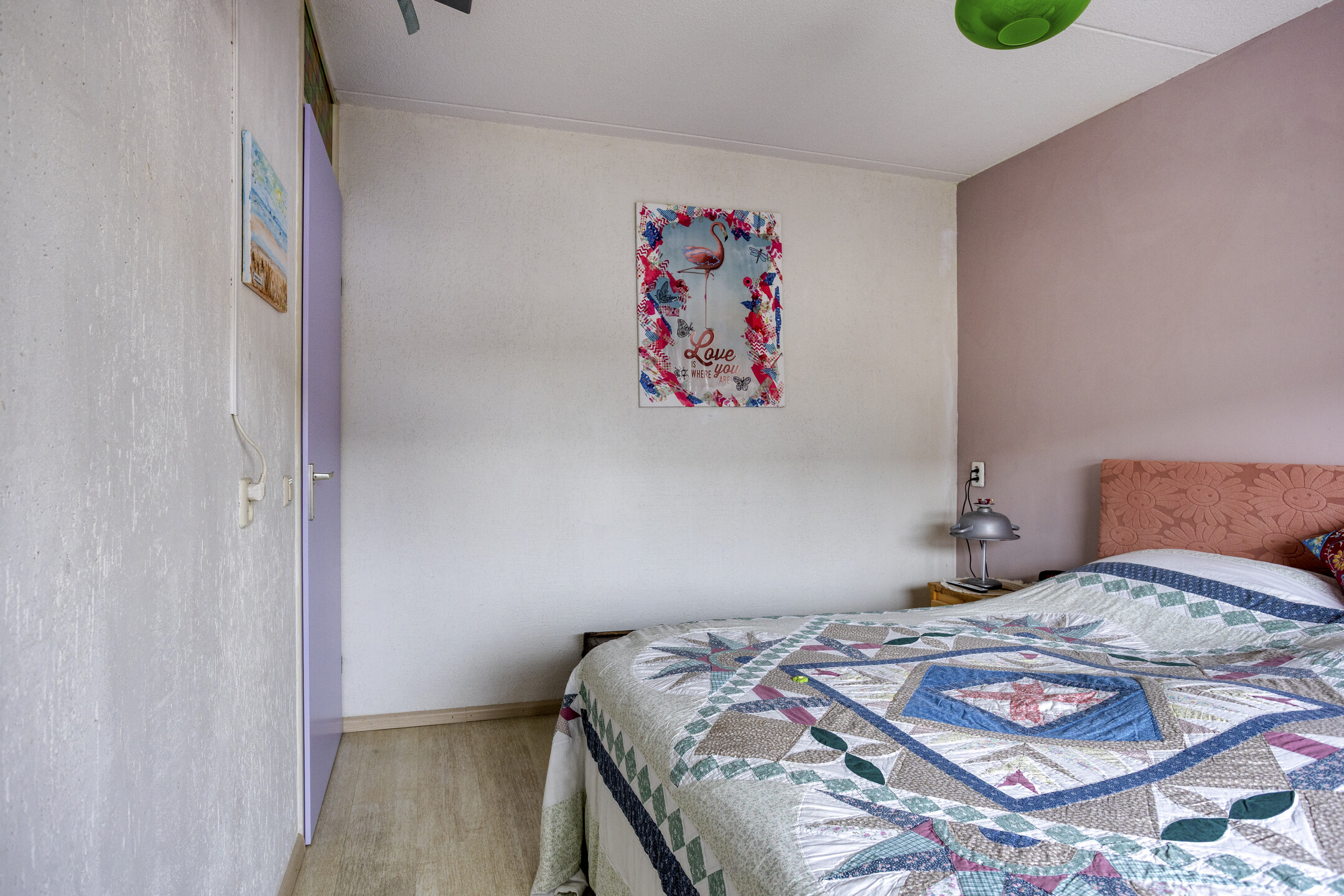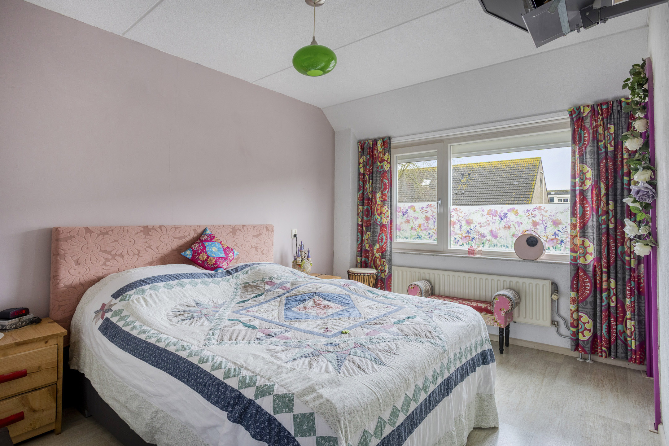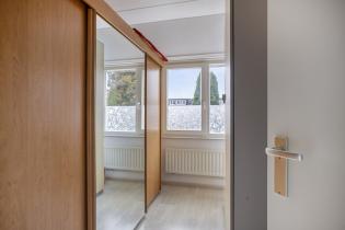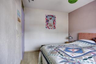 De 2e slaapkamer ligt eveneens aan de achterzijde, is vergelijkbaar afgewerkt en biedt een ruimer formaat. De hoofdslaapkamer bevindt zich aan de voorzijde en beschikt over directe toegang tot de badkamer.