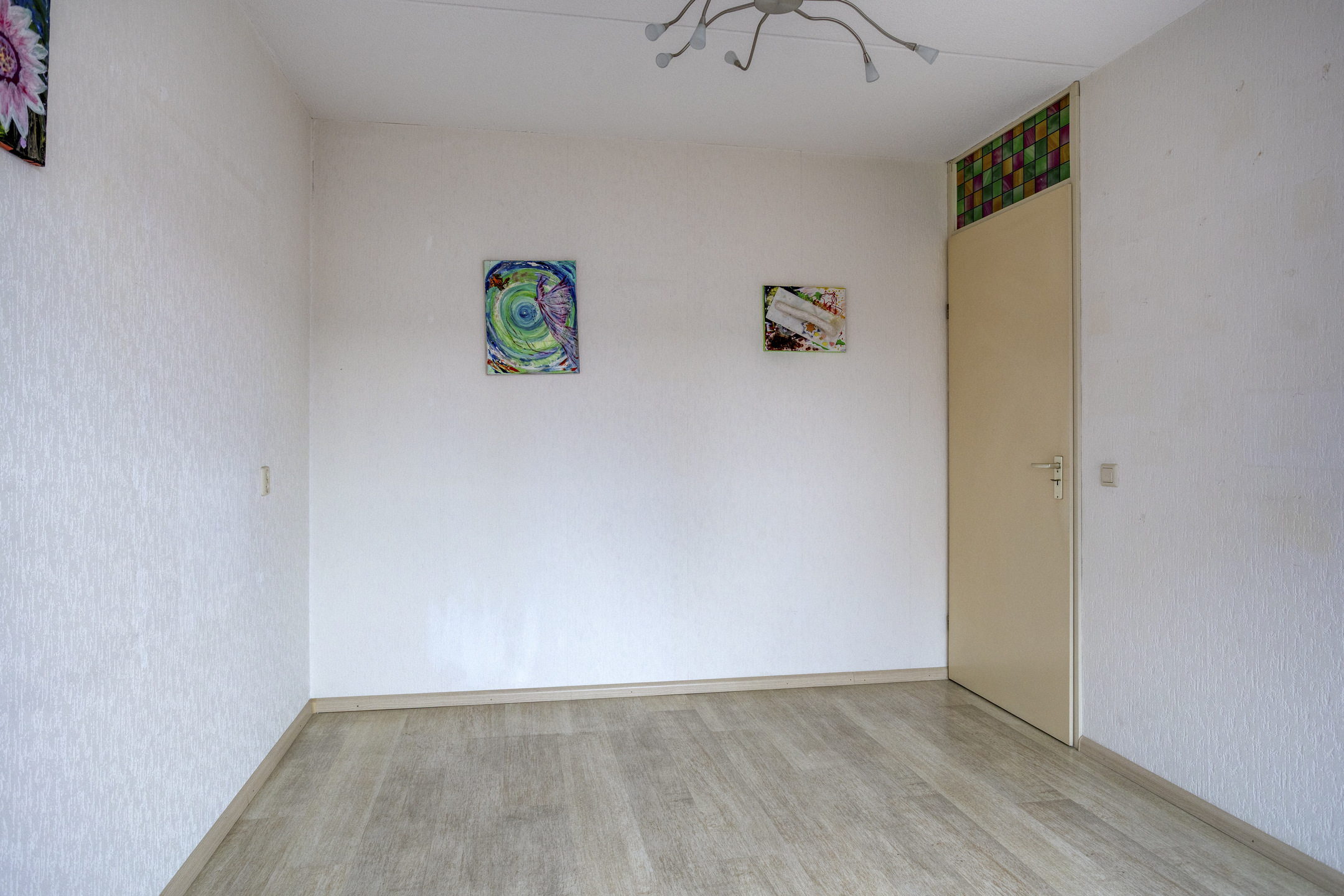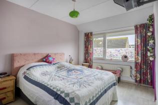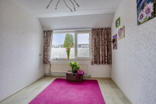 Op de overloop bevinden zich 3 slaapkamers en de badkamer. De 1e slaapkamer ligt aan de achterzijde en wordt momenteel gebruikt als kastenkamer. Deze kamer is afgewerkt met een laminaatvloer en behangen wanden en is uitstekend geschikt als werk- of kinderkamer.