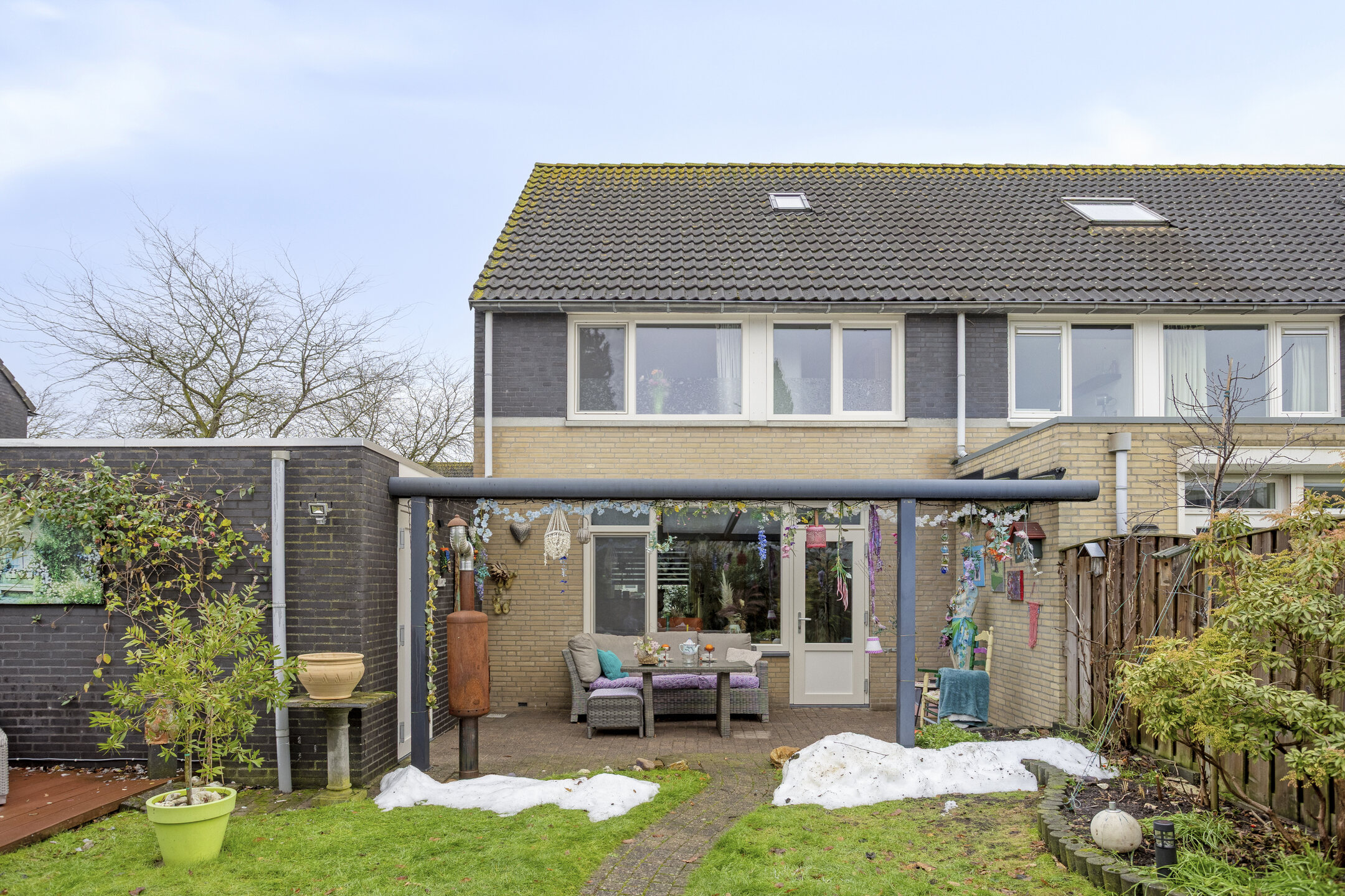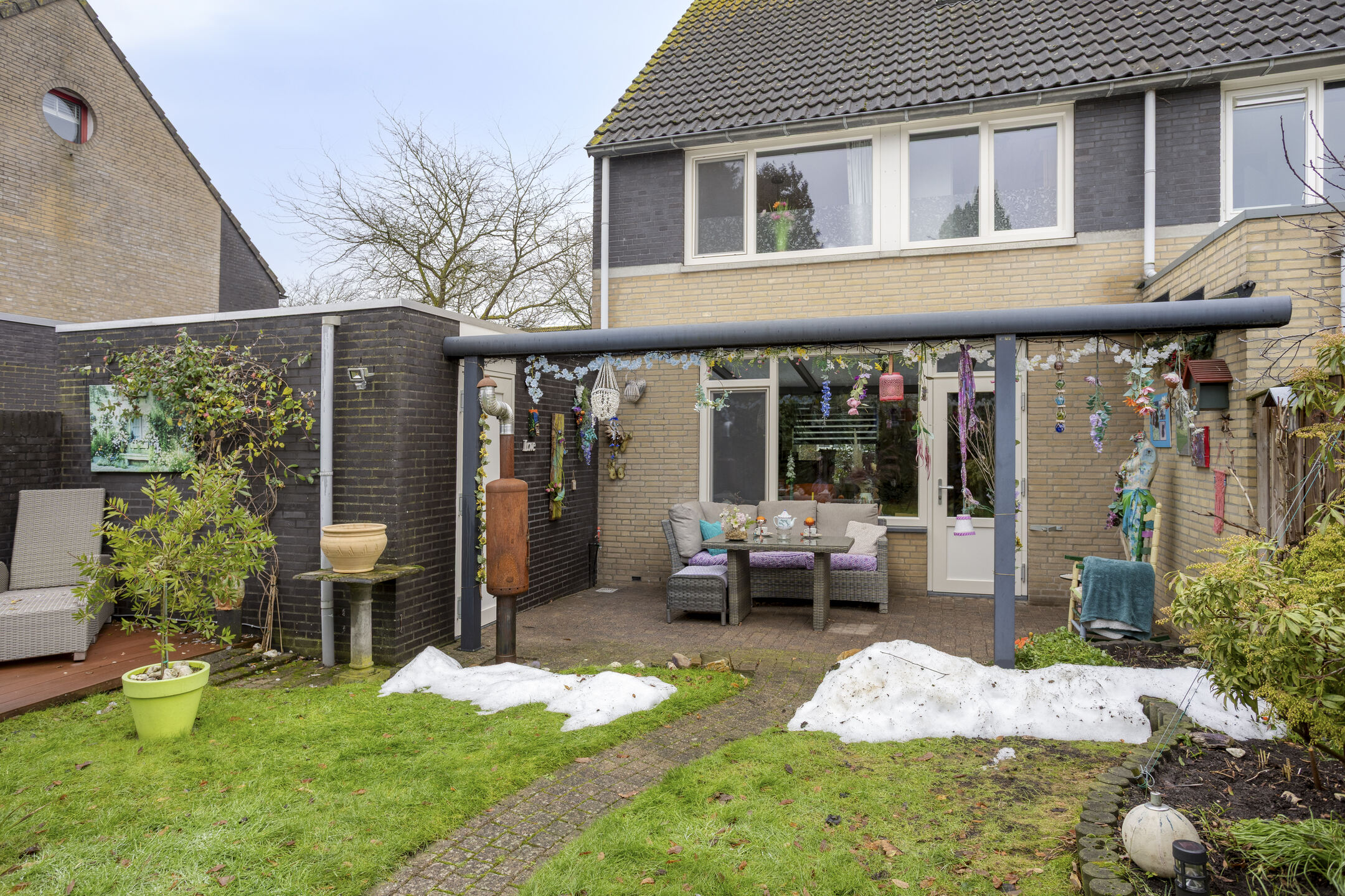 • Zonnige tuin met overkapping
