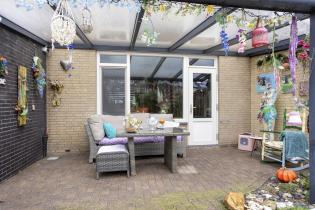 De achtertuin is een heerlijke plek om te verblijven en biedt volop privacy. Direct aan de woning bevindt zich een overkapping met ingebouwde verlichting, vanwaar u ook toegang heeft tot de garage. De garage is voorzien van meerdere stroompunten en beschikt over een elektrische garagedeur.