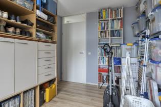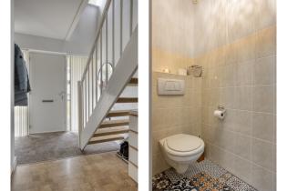 De toiletruimte is deels betegeld en voorzien van een staand toilet en fonteintje. De naastgelegen wasruimte is eveneens deels betegeld en biedt de mogelijkheid om deze desgewenst om te bouwen tot een 2e badkamer. Hiermee kan een ideale verdieping worden gecreëerd voor oudere kinderen of logees.