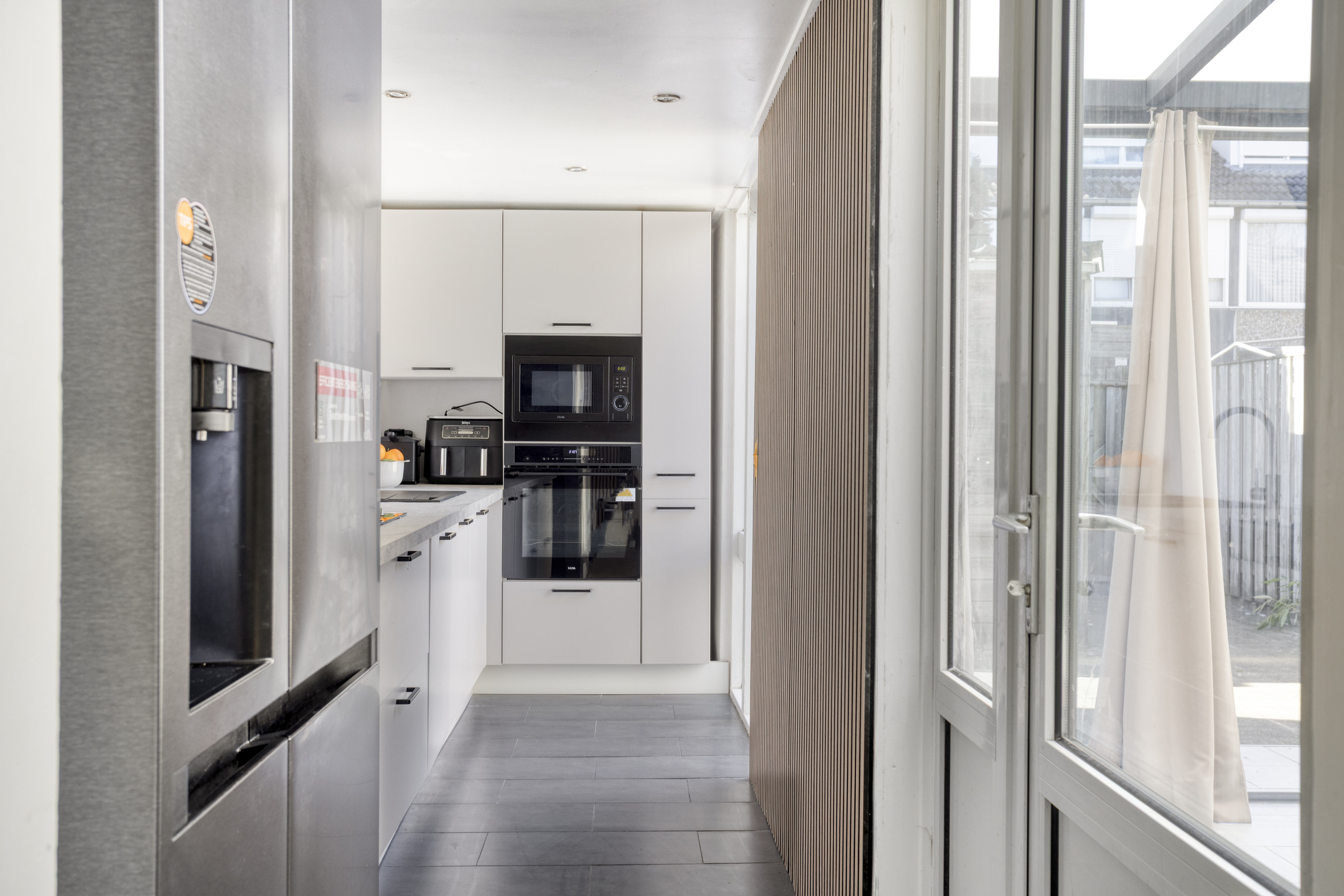 Verder is er aan de achterzijde een fraaie serre met grote glazen schuifpui naar de achtertuin. Je kunt hier vrijwel het hele jaar door genieten van extra leefruimte die verbonden is met de tuin.