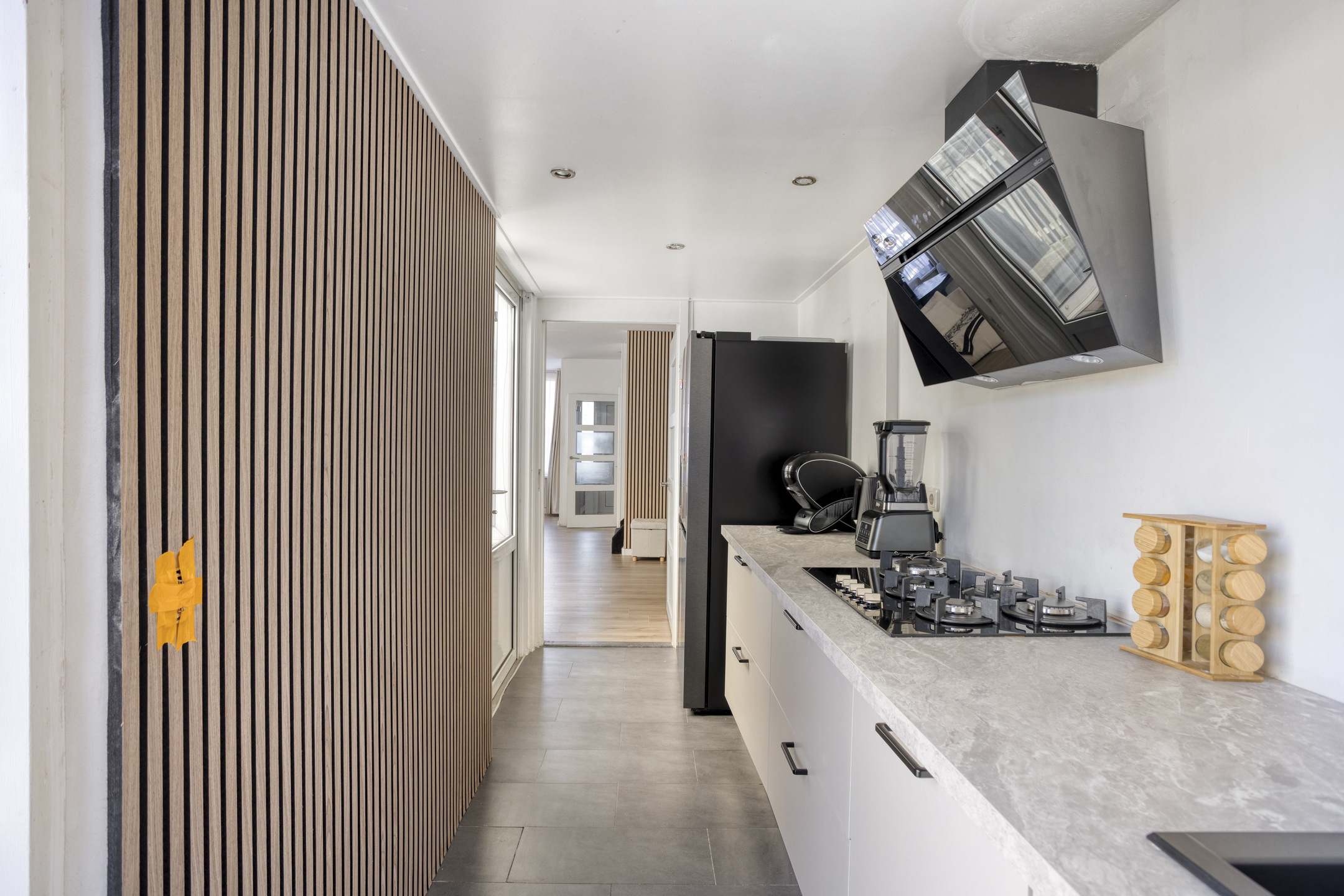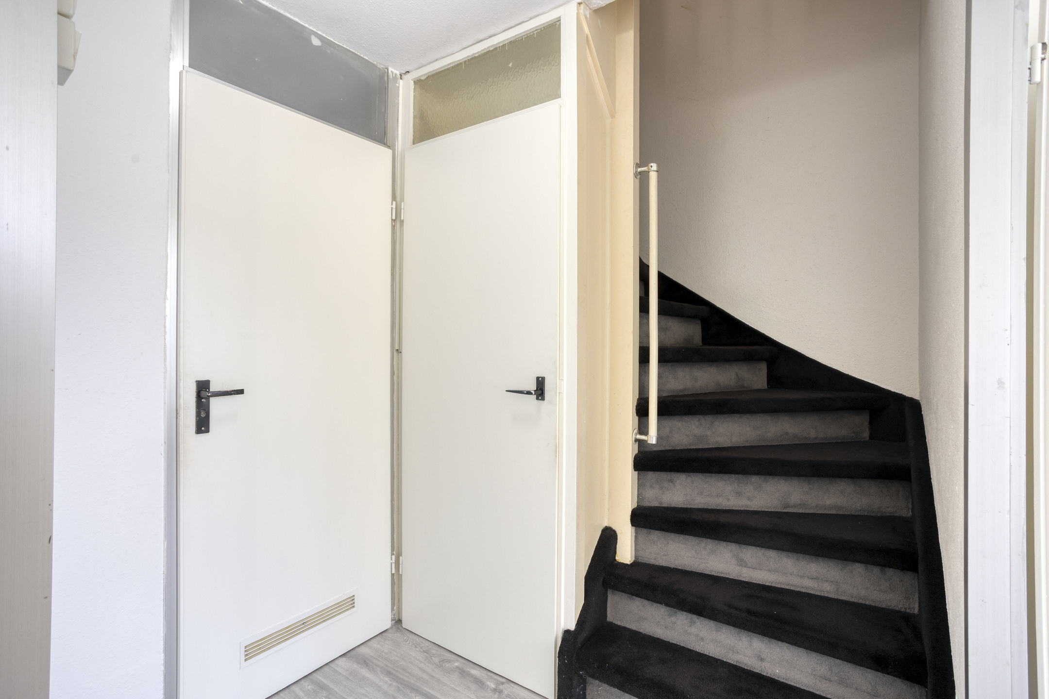 Vanuit de woonkamer is er toegang tot de trapopgang naar de eerste verdieping.