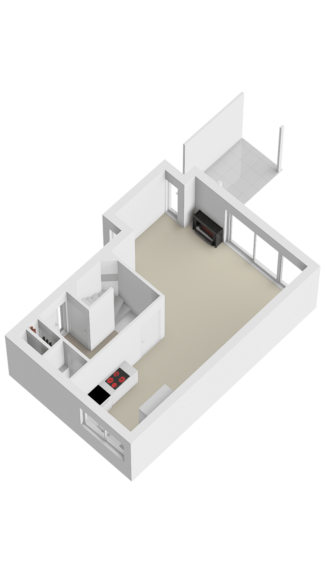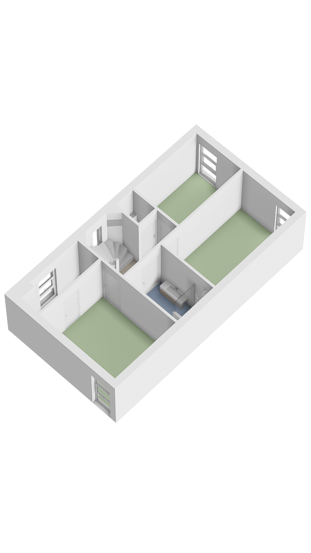 Via een vaste trap bereikt u de ruime vierde slaapkamer, voorzien van twee inbouwkasten. Op deze verdieping bevindt zich ook de bergruimte met aansluitingen voor wasapparatuur en de opstelling van de mechanische ventilatie-unit.