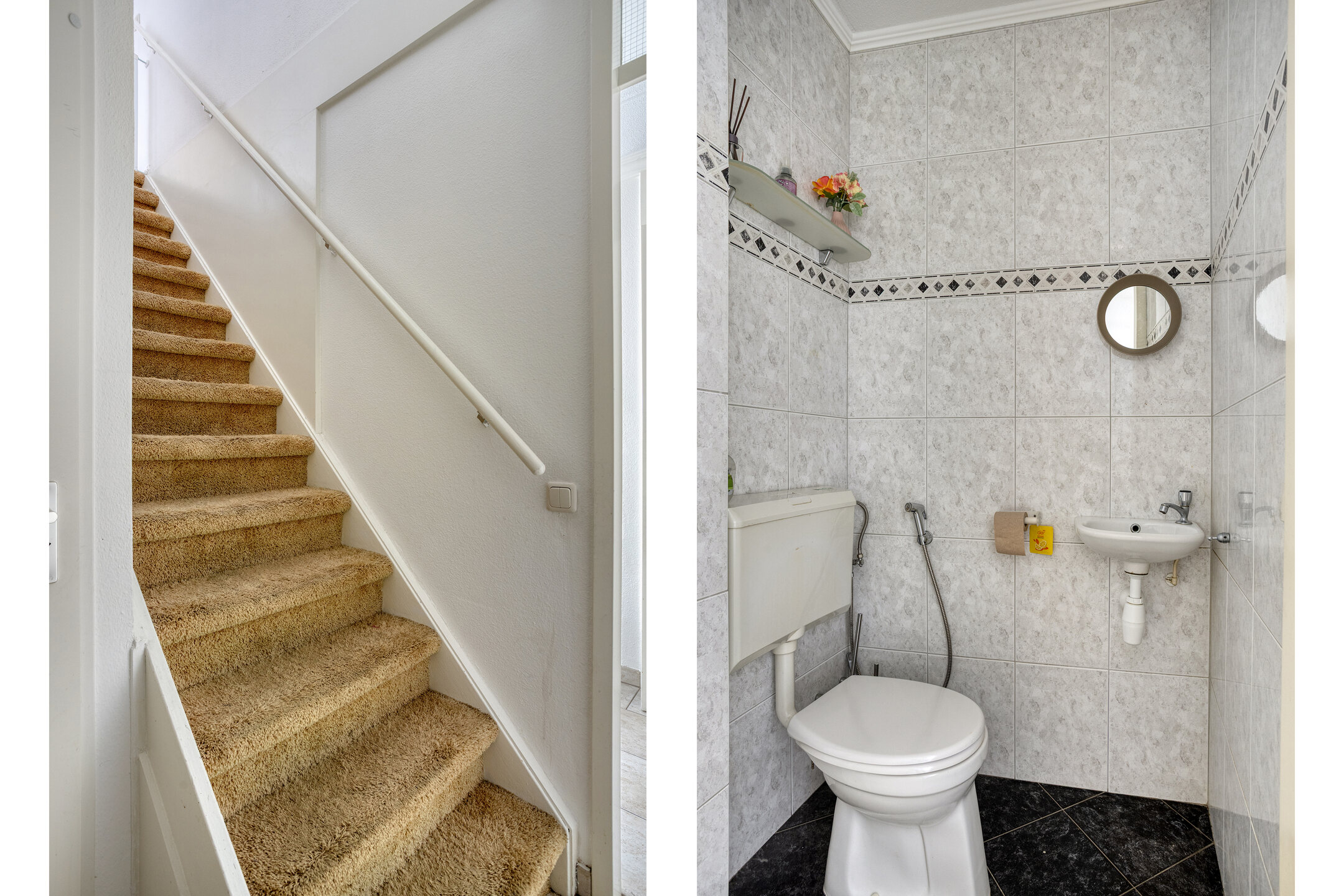 De nette voortuin biedt een uitnodigende entree. Binnenkomst in de hal met een modern toilet, een slimme meterkast en de trapopgang naar boven.