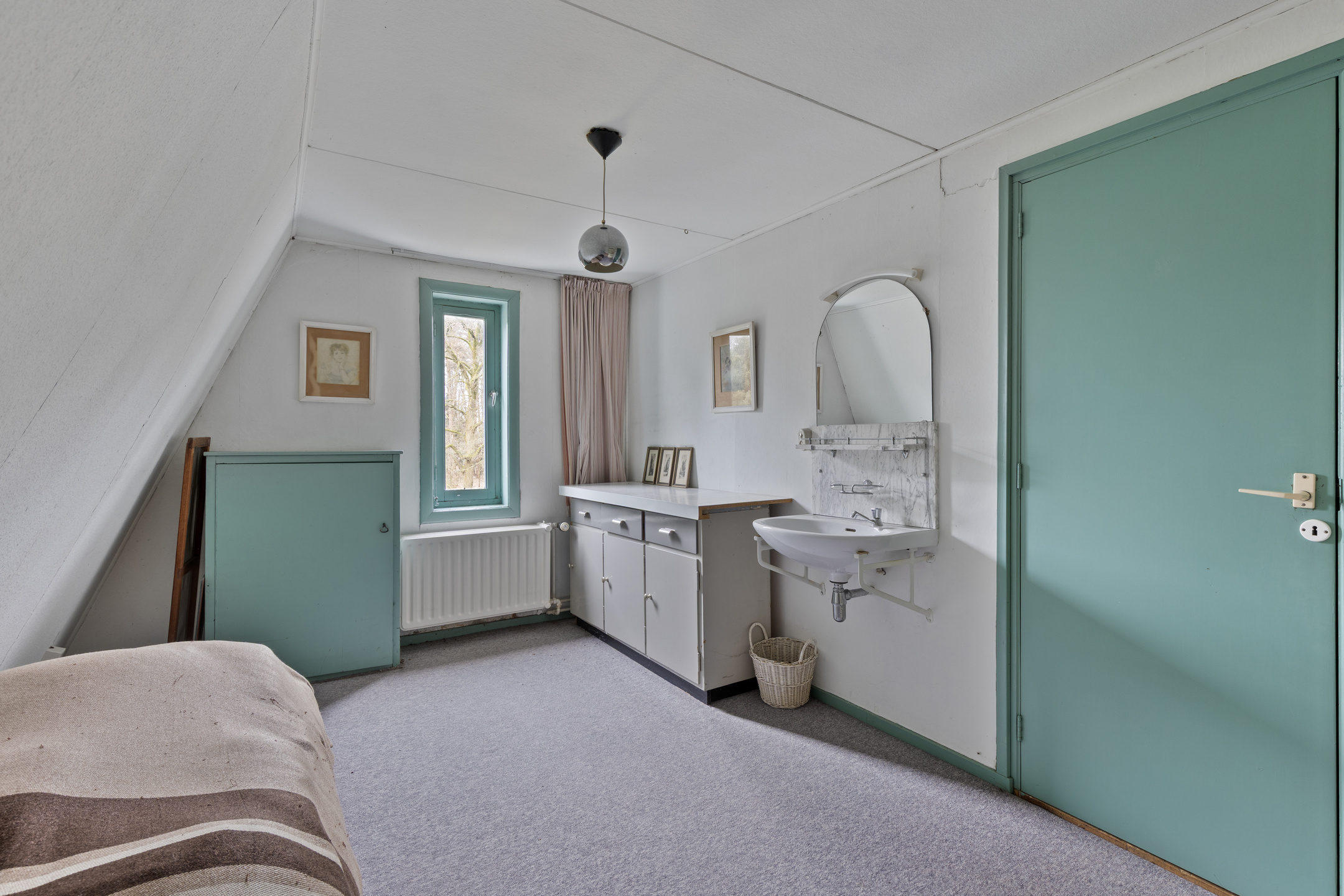 Er zijn twee slaapkamers op deze verdieping. De kamer aan de voorzijde is een praktische ruimte, ideaal als logeerkamer of rustige werkkamer. Deze kamer beschikt over een wastafel en heeft toegang tot een extra bergzolder.